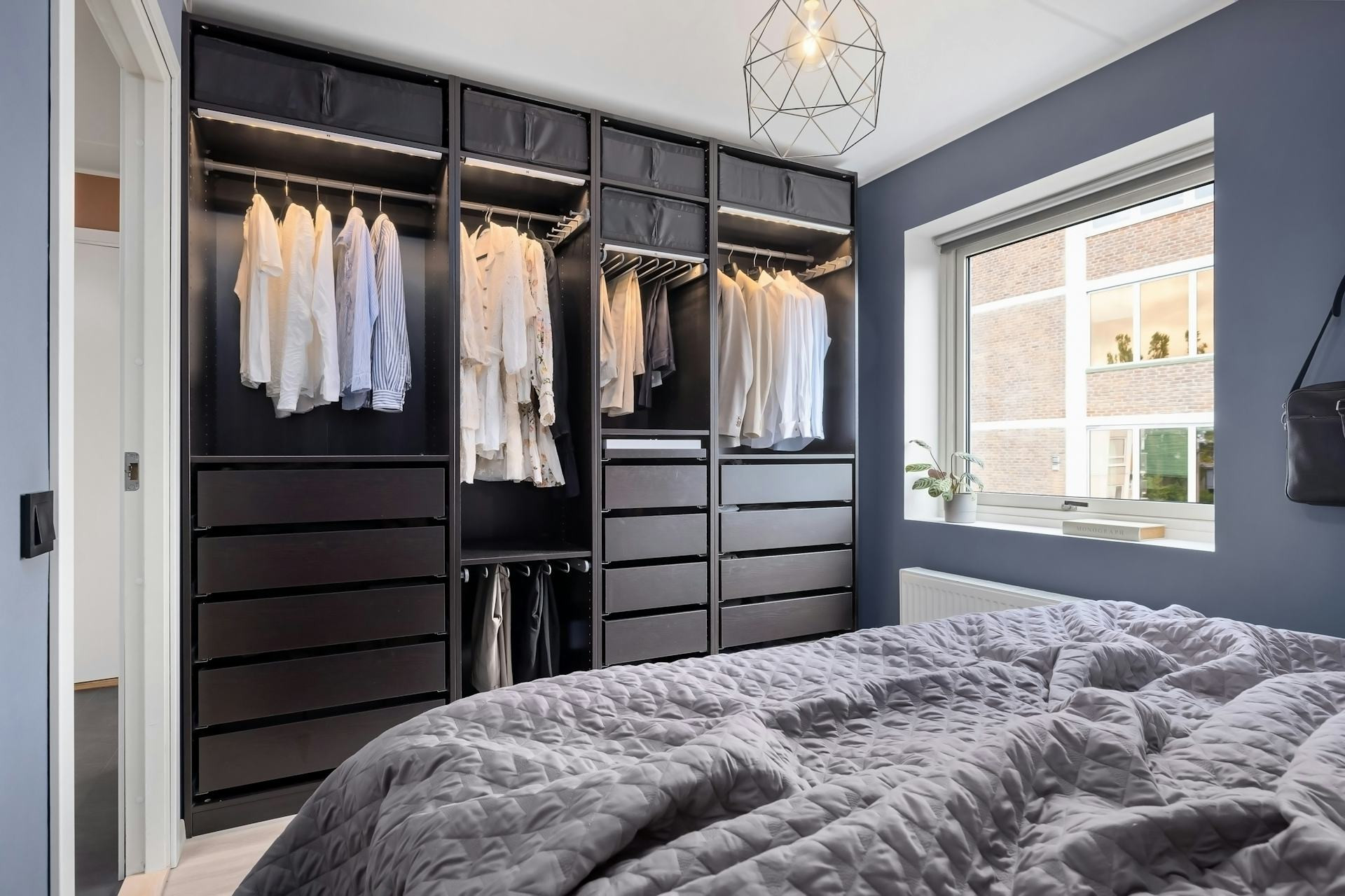 - Vurder åpne garderobeløsninger hvis plassen tillater det – det gir både bedre ventilasjon og et luftig uttrykk.
